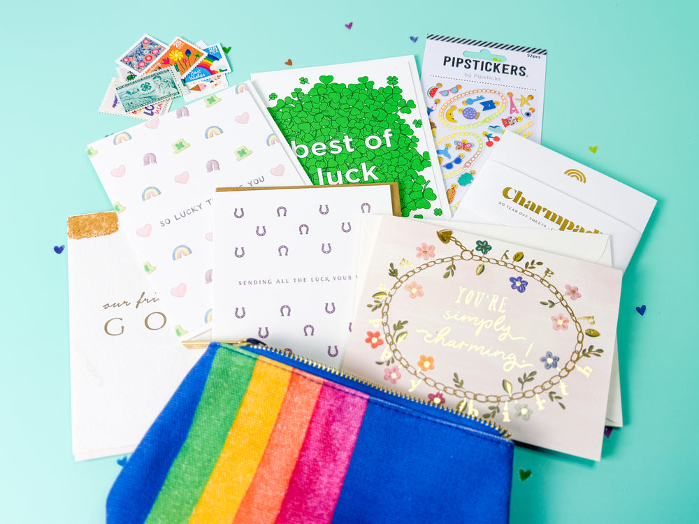 Hello our charming Posties! This month, we’re wishing you good luck with a little extra charm— a stationery collection inspired by all things lucky, bright, and feel-good. With four-leaf clovers, horseshoes, rainbows, and charm bracelet icons sprinkled throughout, every piece feels like a little “pocket luck” moment—something you’d keep close for extra confidence, and joy. Whether you’re writing a note, stamping a letter, or making a list, we hope you’re completely charmed!