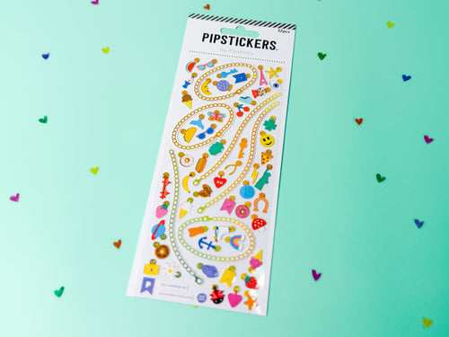 This sticker sheet is a charm bracelet for your journal or an important letter envelope—full of tiny, colorful icons strung along whimsical gold chains. From lucky clovers and horseshoes to hearts, stars, and playful retro doodles, every little sticker feels like its own good-vibes talisman. The bright mix of symbols makes it perfect for adding personality to planners, letters, and scrapbooks. It’s cheerful, nostalgic, and absolutely charmed to join your stationery stash. Pipsticks was founded in 2014 by Mo Vazquez, a designer and sticker lover. Mo started this business as a side hustle for her own joy in the throws of motherhood, but it has grown into a thriving business that spreads joy the world around!