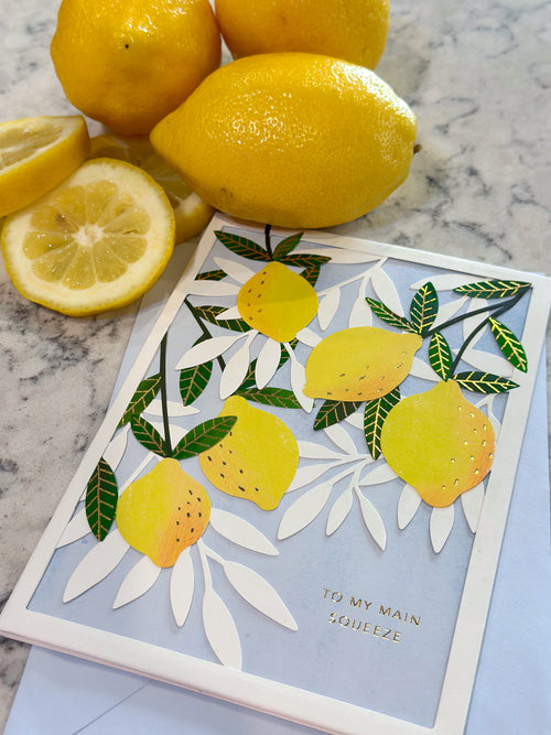 Send your main squeeze this laser cut lemon card and write a note to let them know how much they mean to you. The texture and the color of the cutout lemons and branches on this card by UWP Luxe evoke the setting of a lemon grove! UWP Luxe is a boutique line of pop-up greeting cards and laser-cut stationery.