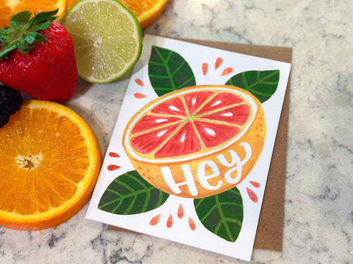 We love the ruby red of this grapefruit and the simple ‘hey’ sentiment that makes this card a versatile one to have on hand! The detail on this watercolor card is gorgeous, and we know you will love it! Sketchy Notions is a colorful and cheerful stationery and paper goods line based in Los Angeles, California. Every Sketchy Notions product starts with a pencil sketch, hand-lettering and watercolor illustrations. Sketchy Notions hope to help spread love and snail mail connections to everyone. Chelsea Ward, the artist and owner behind Sketchy Notions, is an artist, author and art teacher.