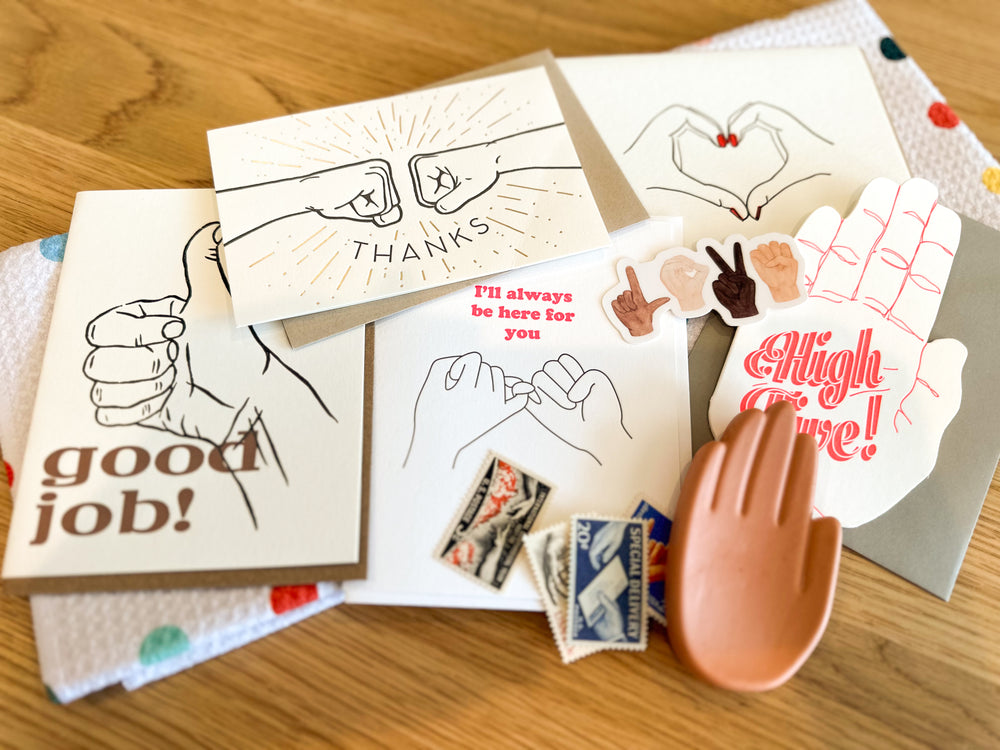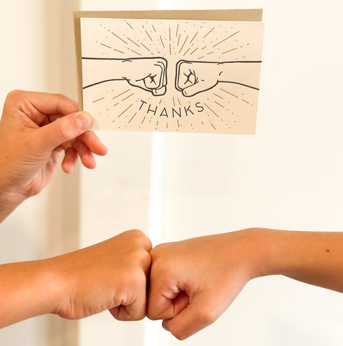 👊 A gratitude card with extra punch—literally. Send this fist bump of thanks to let someone know they knocked it out of the park and you couldn’t appreciate them more. Pike Street Press designs and crafts artisan greetings in the Pacific Northwest. The tradition and love of letterpress printing is ingrained in everything they do.