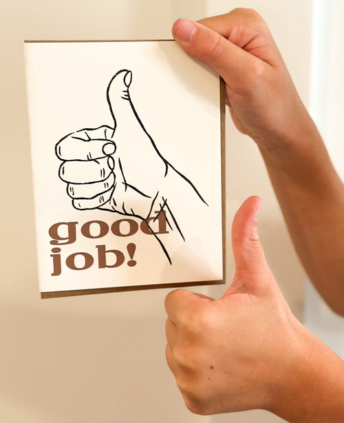 👍When someone deserves more than just a pat on the back, this card delivers the applause they’ve earned. A bold thumbs-up and a big “good job!”—perfect for celebrating wins big and small, from promotions to personal triumphs. Lynn-oleum creator and owner Lynn Jones strongly believes in empowering women, preserving nature, supporting small businesses and encouraging creativity. We have been a huge fan of her Linoleum block printmaking line for a long time and even bigger fans of her personally!