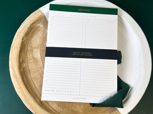 We’ve long been huge fans of Smitten on Paper’s Legal Notepads and this month’s posh gift of their Daily Agenda is no exception. With a gold foil heading, perforated sheets, and designated sections for a variety of daily items to track, this notepad will instantly elevate your look! Smitten on Paper creates timeless design with foil stamping and letterpress to create beautiful stationery. Their line began with custom wedding invitations in 2012 and expanded to a full line of stationery products in 2015. All of their products are designed and printed in their Monrovia, California studio.