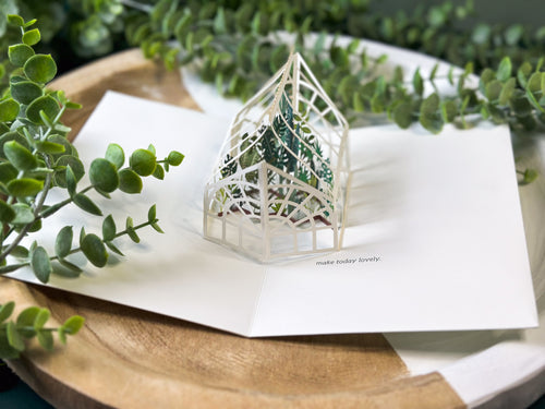Not just a card, this laser cut pop up card has the perfect all occasion message and the intricate greenhouse makes a beautiful desk decor, too. The details on the leaves and gold foil accents make this a card that will continue to bring joy long after it's been opened! UWP Luxe is a boutique line of pop-up greeting cards and stationery. They believe that paper, the humblest of mediums, holds so much potential. They specialize in elaborately foiled pop-ups and we’ve come to expect the unexpected in UWP creations. We love to bring their creativity to our Posties!