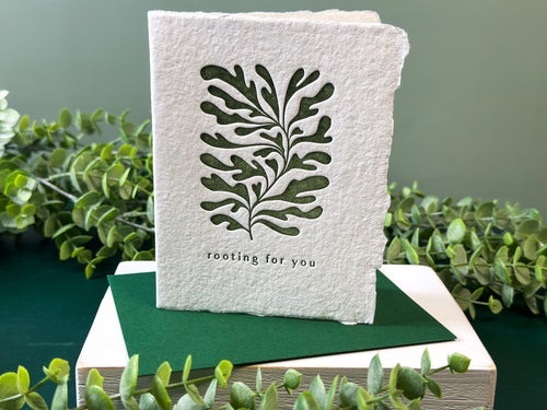 Send an encouraging missive with this beautiful letterpress card from Paper Baristas and let them know you’re rooting for them. We love the sentiment of this card and the peace the gorgeous foliage evokes. Paper Baristas creates beautiful paper goods for the greater good by prioritizing sustainability in every way—from sustainable living wages to the upcycled cotton they use to make their paper. They are actively fighting against human trafficking around the world both by giving back and providing employment for those in vulnerable situations. Owner and creator, Christy, is also an encourager and friend to all in the paper world. We love the beauty she creates, both in her stationery line and the world.