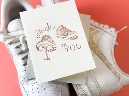 Let someone know how special they are with this “stuck on you” card from Belle and Union. We love how Meg designed this card to spin the nemesis of your sneakers (gum!) into a sweet sentiment! Meg’s greeting cards are works of art, printed on antique printing presses in her San Antonio retail store.