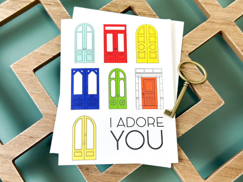Bright, bold, and full of love—this letterpress card from Quick Brown Fox features a cheerful collection of doors in all shapes and sizes, brought to life in vibrant colors. Tucked among them is a simple, sweet sentiment: “I adore you.” Printed using classic letterpress techniques for a timeless, tactile feel, it’s a joyful little love note perfect for partners, friends, or anyone who makes your heart feel like home. Kate Murray, owner, printer and designer at Quick Brown Fox, is one of the warmest, funniest people you will encounter. She has a love for people, paper, and making a day brighter with the perfect pun. She hails from Saugerties, New York and started in the business by working in letterpress studios for a decade prior to launching her fantastic brand of letterpress cards. Her cards are quirky, bright, and filled with the best puns! Kate is always ready with a homemade cookie and a helping hand.