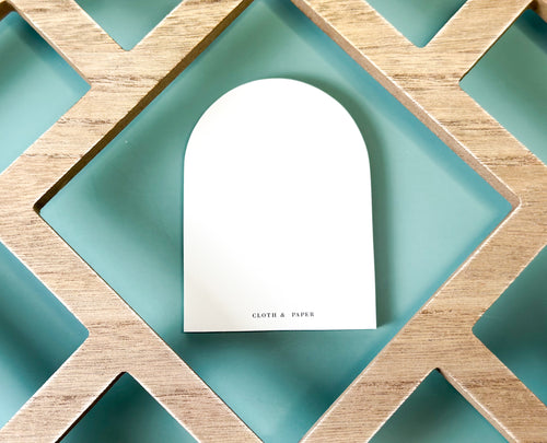 Inspired by the timeless elegance of arched doorways, these linen-colored sticky notes by Cloth & Paper bring a touch of sophistication to your desk. Their unique shape and neutral hue make them the perfect blend of function and style, offering a subtle, refined way to jot down notes, reminders, or messages. Whether you're organizing your thoughts or adding a little beauty to your workspace, these notes open the door to endless possibilities. Established in 2015, Cloth & Paper was birthed when founder, Ashley, was between jobs and looking for the perfect planner. She decided to try her hand at making her own to fit her minimal aesthetic and her entrepreneurial journey began! Ashley now leads the team behind Cloth & Paper in Richmond, VA.