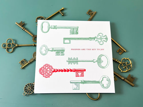 Celebrate the ones who unlock the best parts of life. This heartfelt card from &M Studio features an array of beautifully illustrated skeleton keys in all shapes and sizes on the front, paired with the warm sentiment “Friends are the key to joy.” On the back, a sweet surprise—a delicate heart-shaped lock, a quiet reminder of the connection that ties it all together. Perfect for besties, soulmates, or anyone who holds a special place in your heart. Creator and owner of &M Studio, Marina, has a deep talent for capturing the complexity of nature in her art with wonderful puns and this card is no exception.