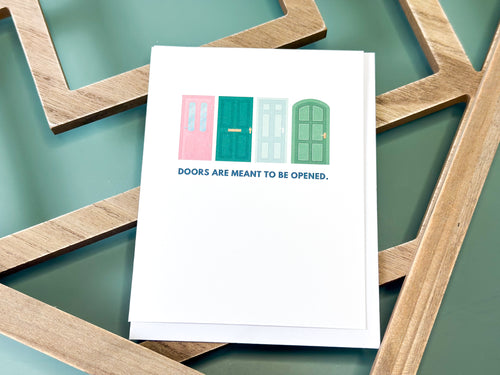 Invite possibility with this charming greeting card by Lines by Lia featuring four illustrated doors in soft pinks and greens—each one a little different, each one full of potential. Paired with the inspiring sentiment “Doors are meant to be opened,” it’s a gentle nudge toward new adventures, fresh starts, and saying yes to what’s next. Perfect for graduations, new jobs, big moves, or just encouraging someone to take that first brave step. Lines by Lia founder hopes that her greeting card line is unique in a way that encourages people who may not be traditional stationery users to pick up a greeting card and spread some love!