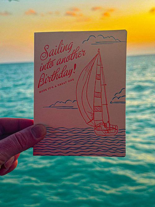 The perfect spring birthday card for all the birthdays in your life, we love this letterpress card from Color Box Design & Letterpress. The illustration evokes sunshine on your face as you sail away on a perfect sunny day into a new year! We love all the details on this card: letterpress waves and beautiful sails on the boat, the tiny sailor steering the ship, and the rounded corners of the card! This card leaves no detail unturned and will celebrate a birthday with pizzazz! Colorbox Design & Letterpress hails from Dallas, Texas, focusing on inspiring and preserving connections with luxury paper goods and gifts. They are fueled by exceptional craftsmanship, steeped in traditions, and obsessed with letterpress and all things paper.