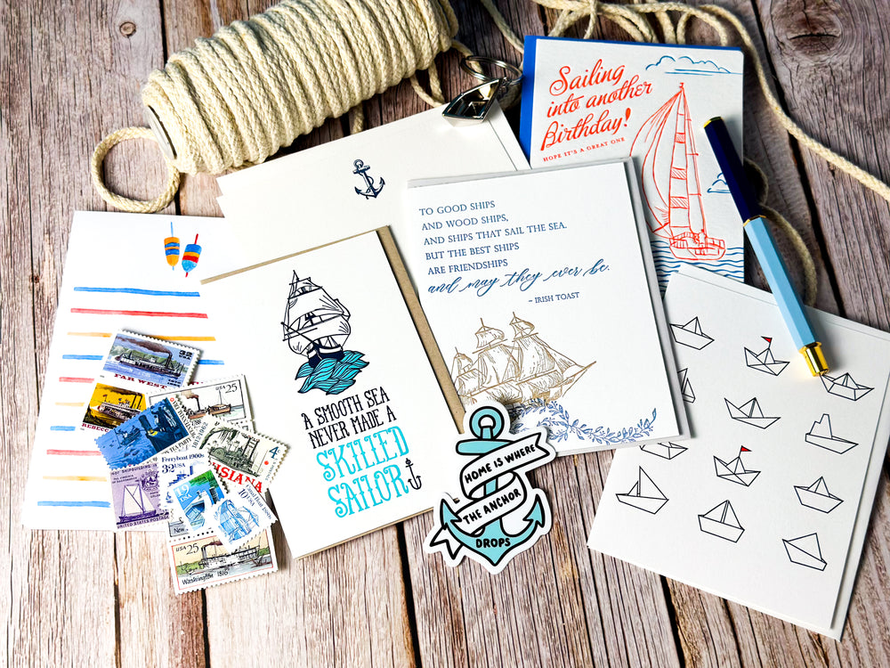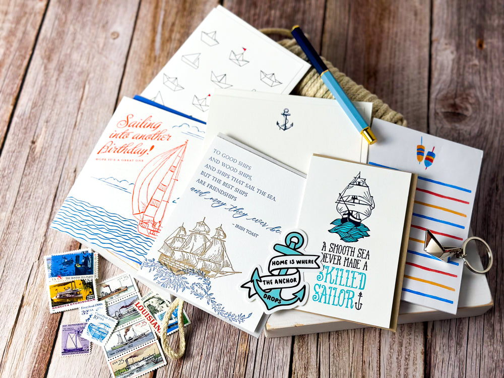 Ahoy, Posties!! Come sail away with us this month at Postmark’d Studio! We hope you find this month’s parcel to be ship-shape with nautical fun! As avid boaters and lovers of all things water, we thought it was ‘a boat’ time for a ship-tastic parcel!