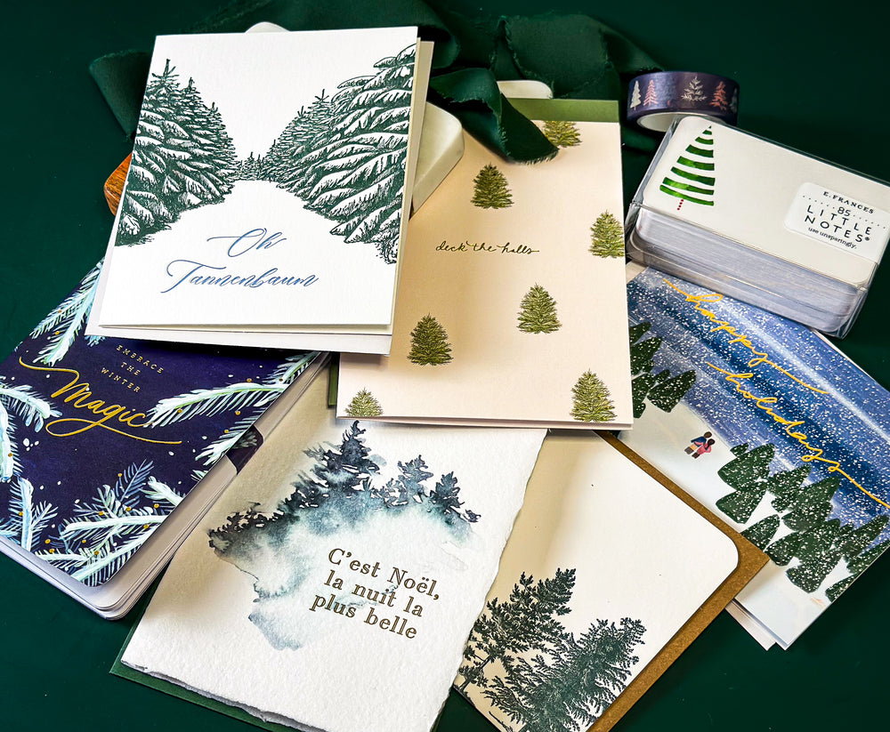 We hope this parcel finds you in a magical winter wonderland with snowflakes, gingerbread cookies, and the fresh scent of pine! This month’s parcel is full of holiday greetings that evoke the best of the season. Heartfelt, enchanting, and charming, we hope these holiday greetings make merry all month!