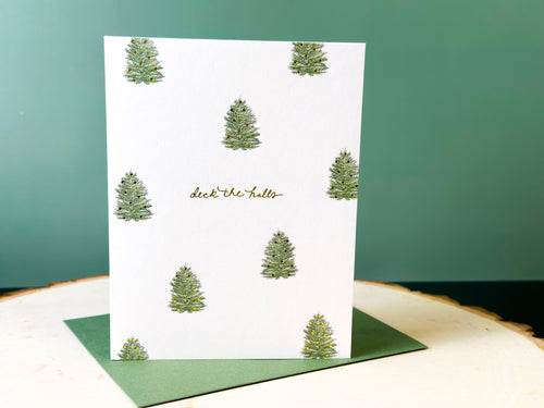 Deck the halls! Ramona and Ruth’s repeating Christmas trees decorated in gold balls elicit the season of Christmas’ gone by! This gorgeous gold foil card celebrates the season! Ramona & Ruth is a boutique letterpress stationery studio in Omaha, Nebraska founded in 2009 by owner Kim Burks. Kim believes there is always loveliness in simplicity, and the best things in life are those that fill our days to the brim with warmth, kinship, and joy.
