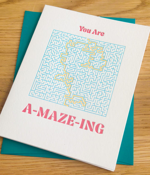 We think this letterpress card from Ancora Letterpress is A-MAZE-ING, and we hope you do, too! Perfect as an everyday hello or to congratulate someone on an accomplishment, this bright card will spread new year cheer and delight your recipient. We are obsessed with the details in the letterpress maze! Ancora Letterpress is a one-woman letterpress print studio specializing in elegant stationery, coasters, and paper products to stay in touch with loved ones, and make your workspace beautiful. Debra’s passion is coming up with high quality stationery that is both unique and authentic.