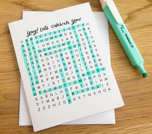 We love to find new and creative types of greeting cards, and this word search is such an genuinely fun concept! Simply use the key on the back of the card and highlight the occasion you’re celebrating with the card before sending it to your recipient. Whether you’re celebrating a new home, wedding, work accomplishment, or many other life milestones, this word search from Just Follow Your Art has the versatility to celebrate them all! Jesi is the owner, creative director and lettering artist behind Just Follow Your Art. Hand lettering is Jesi’s favorite part of the design process. She spends hours drawing each letter (instead of using fonts). Combining Jesi’s talents of feeling all the feels + creative lettering allows her to design pieces that you are excited to display in your home or give to others as the perfect gift.