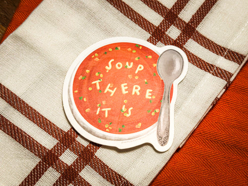 Stick this Meredith Ann Illustrations alphabet soup sticker to your favorite mug or notebook for Fall and have a little sass with the season! Meredith can be found creating in her hometown of Nashville, TN, illustrating punny greeting cards and stickers with her crazy calico cat, Basil.