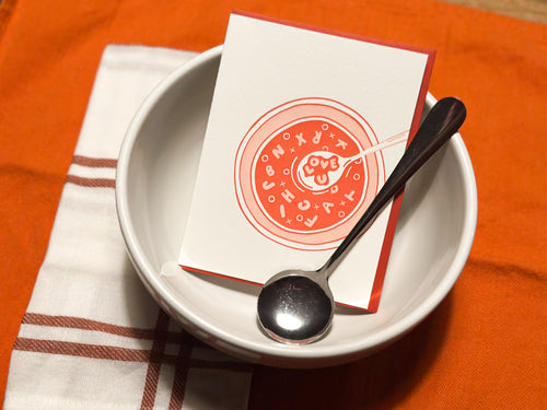 Say I love you and CHICK-IN on someone you care about with this gorgeous alphabet soup card from Dahlia Press. We love the whimsical letters and letterpress bowl of soup! Dahlia Press is a boutique design and letterpress studio founded in 2008. After years of providing happy couples and families with custom invitations and announcements, in the summer of 2014, Dahlia Press began a small line of greetings and social stationery in order to expand its current offerings. Today their growing line includes over 400 greetings, and incorporates a variety of stationery goods such as wrapping paper, notepads, pens, and art prints.