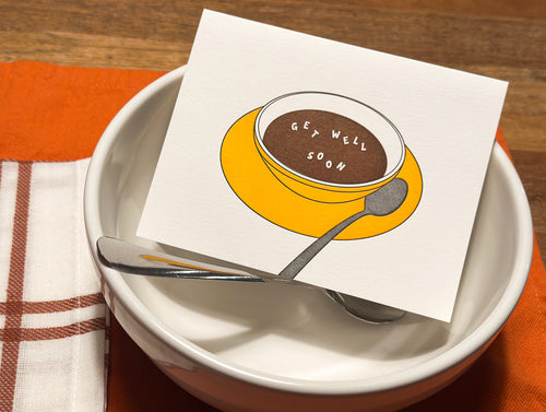 It’s always great to have a few Get Well cards on hand to be ready to acknowledge someone when they’re under the weather. You can be SOUPer thoughtful and timely! This pressed soup course from Quick Brown Fox Letterpress is perfect to send well wishes to loved ones when they get the fall colds that are sure to hit! Kate Murray, owner, printer and designer at Quick Brown Fox, is one of the warmest, funniest people you will encounter. She has a love for people, paper, and making a day brighter with the perfect pun. She hails from Saugerties, New York and started in the business by working in letterpress studios for a decade prior to launching her fantastic brand of letterpress cards. Her cards are quirky, bright, and filled with the best puns! Kate is always ready with a homemade cookie and a helping hand.