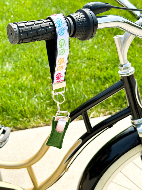 We found these adorable keychain wristlets with chapstick holders and thought everyone could use one of these! Hook on your purse, backpack or wrist and head out for a ride! We love the bright bicycles, quality feel of the chapstick holder. KSS Made - Handmade Keychain Wristlets and Chapstick Holders products are handmade. Wristlets are sewn with grosgrain ribbon and polypropylene webbing (think backpack strapping). They are super strong yet flexible to wear on your wrist. Each set comes with a faux leather chapstick holder and a handmade chapstick from another handmade seller! (*ingredients in chapstick: Soybean Oil, Sunflower Oil, Beeswax, Cocoa Butter, Shea Butter, Vitamin E, Aloe Vera, may also contain FD&C Colors and Flavor (4.25 grams)).