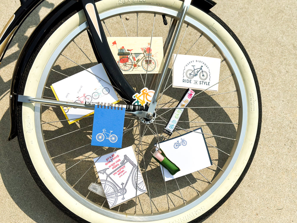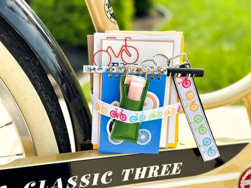 Add this pen to the coils of your mini jotter and have a set that’s ready for the road! We love this smooth writing, ballpoint, fine point pen with a soft touch feel! The repeating bicycle print will be an inspiration to write all of your bicycle cards!