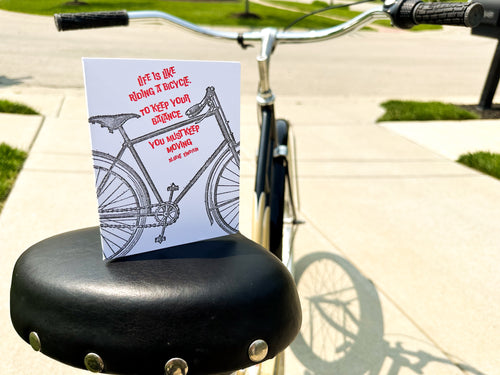 Send this note of encouragement with a quote from one of the greatest minds of all time! We love the letterpress detail and pop of orange on this card. Big Wheel Press was founded by Bill Muller in 2006. Its name comes from the first press Bill owned - a Pearl #14 with a large cast iron flywheel. Big Wheel Press continues to use traditional letterpress techniques to craft quirky cards with a vintage flair. We love Bill’s aesthetic and hope you do, too! Checkout the Shoppe for more designs by Big Wheel Press.
