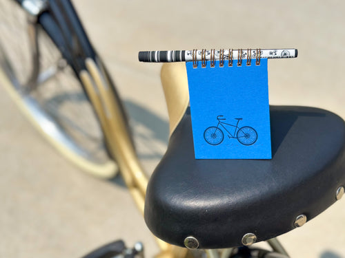 This miniature notebook is perfect for your car, bag, or catch-all drawer. Stash this mini notebook in your pocket for jotting notes on your bike riding adventure! We love the letterpress cover on this mini jotter! Ruff House is a woman owned and run letterpress print shop in downtown Lawrence, Kansas. Each product they create expresses their love of the outdoors and adventure, small-town values, and positivity.