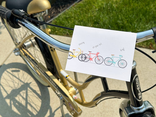 Add this multi colored bicycle sticker to your favorite water bottle or right onto your bicycle! Kevin & Kaia are a father-daughter team located in Brookings, SD. They create hand-drawn greeting cards, postcards, and stickers with unique and simple designs. Kevin draws and Kaia colors. Together they make fun and unique designs for any occasion! Their goal is to encourage people to write more letters, send more cards, and spread kindness as much as possible. We’re rooting for you, Kevin and Kaia!