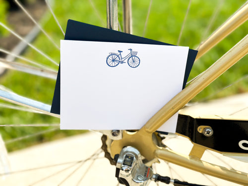 This bicycle letterpress notecard by Ancora Letterpress is the height of sophistication and class. Inspired by the natural simplicity and beauty of bicycles and bike riding in nature, this note card features a deep navy, detailed bicycle at the top of the high quality note card. Ancora Letterpress is a one-woman letterpress print studio specializing in elegant stationery, coasters, and paper products to stay in touch with loved ones, and make your workspace beautiful. Her passion is coming up with high quality stationery that is both unique and authentic. She uses antique printing presses and high quality materials to achieve a unique, tactile product that we love! Ancora Letterpress and Postmark’d Studio are kindred spirits, and we love to see feature this high quality brand!