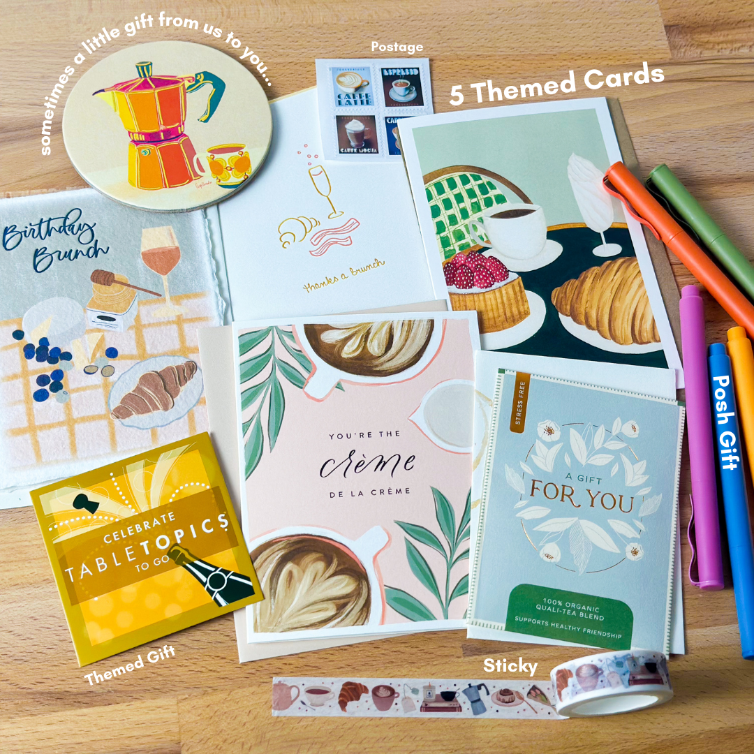 Posh includes 5 cards, fine tip set, Table Topics set, washi tape, sticker and postage for all cards.