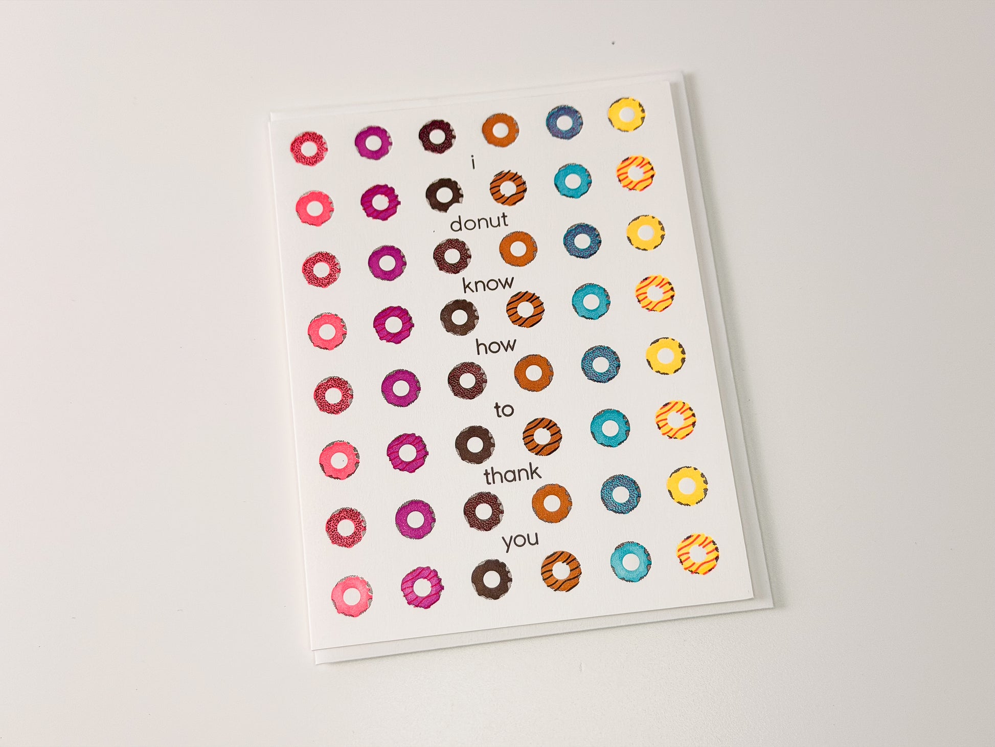 Let someone know you "donut" know how to thank them with this bright letterpress donut card!