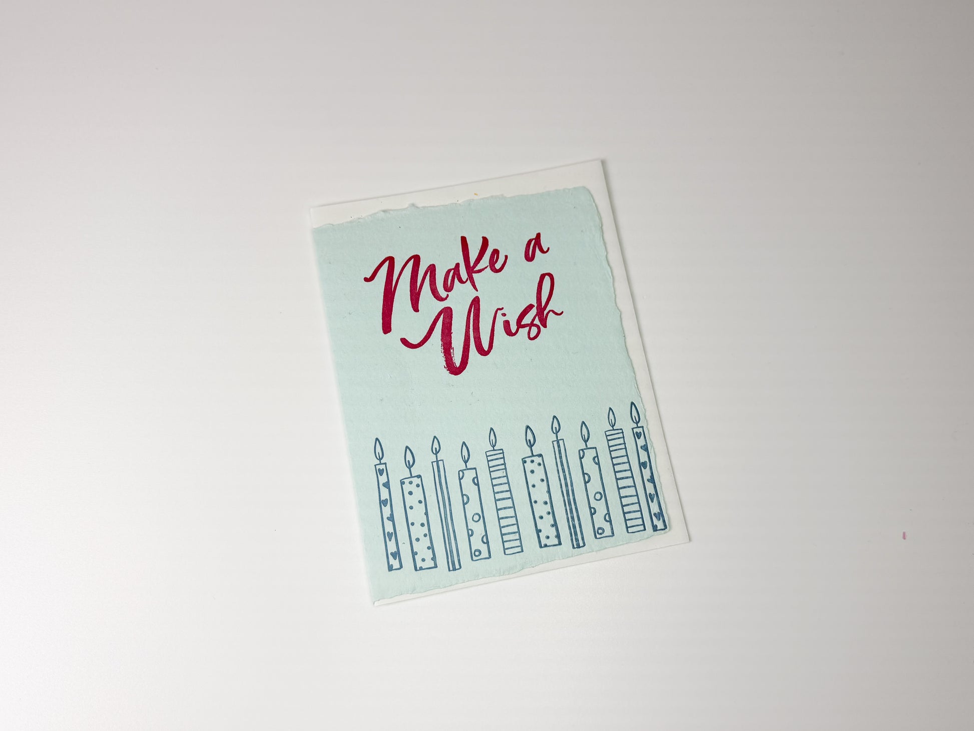 Send someone a wish with this whimsical card of birthday candles printed on luxurious cotton paper with letter pressed text.