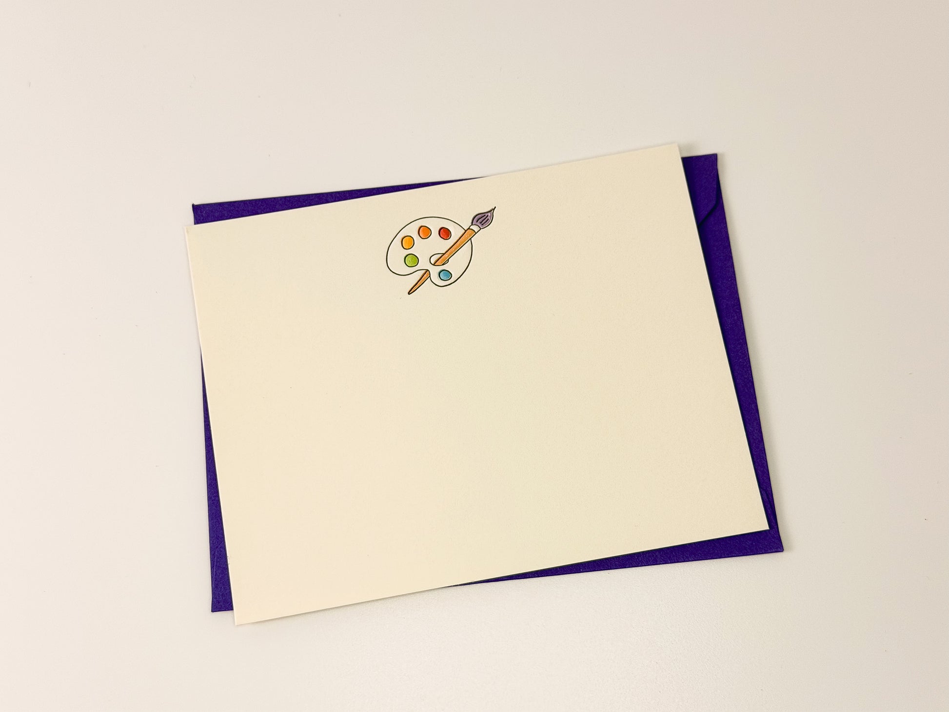 A little note with big creative energy. This beautifully simple notecard by Alice Louise Press features a letterpress design of a tiny paint palette and brush at the top—just enough detail to spark inspiration. Whether you’re sending a quick hello or a thoughtful thank you, it’s a perfect canvas for your words.