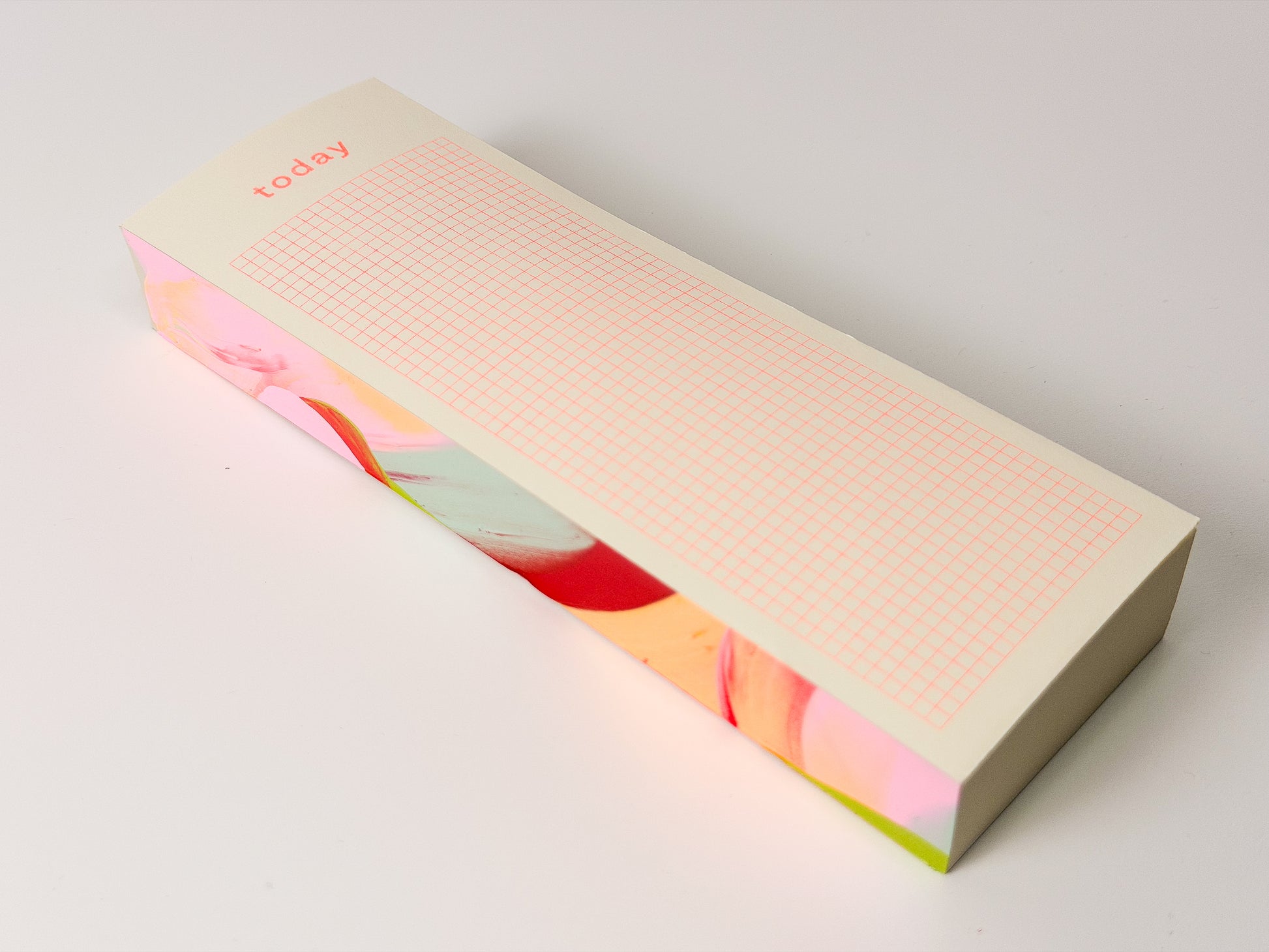 Today is calling—and it’s looking bold. This slim desk notepad packs 160 pages of neon-gridded potential, topped with a confident "today." to keep you grounded in the now. Edges are hand-painted in vibrant, abstract swirls—like your favorite summer day captured in brushstrokes. Bright. Energetic. Totally unmissable. Slide it into your workspace, and let every note, doodle, or deadline feel just a little more electric.