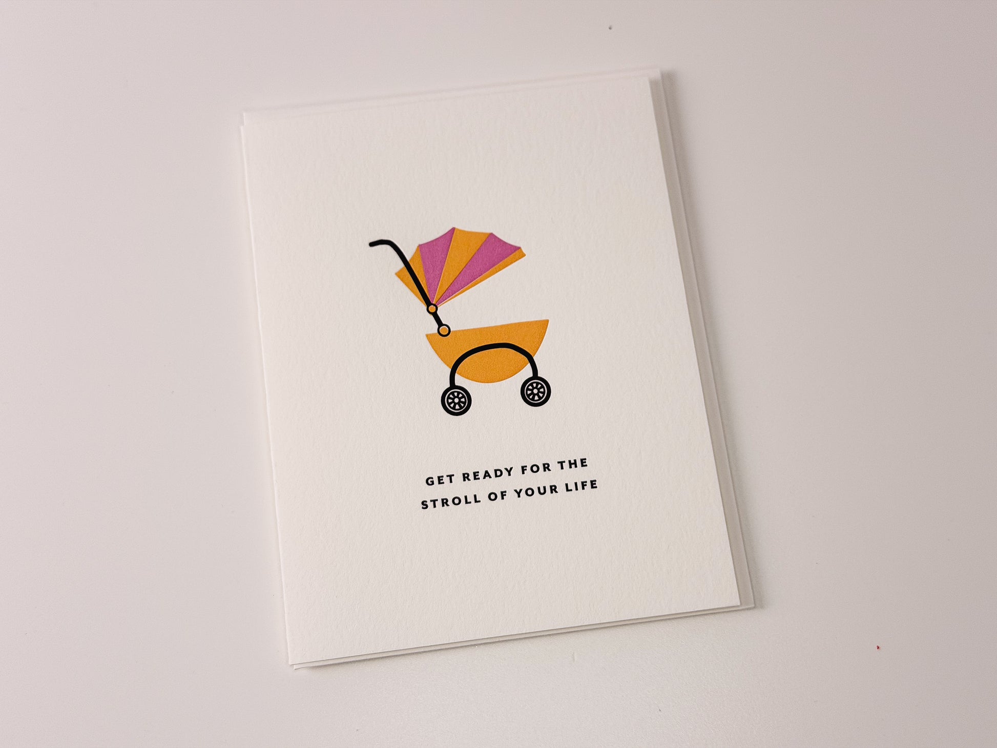 Celebrate a pregnancy announcement, baby shower or new birth with this gorgeous buggy letterpressed on cotton paper!